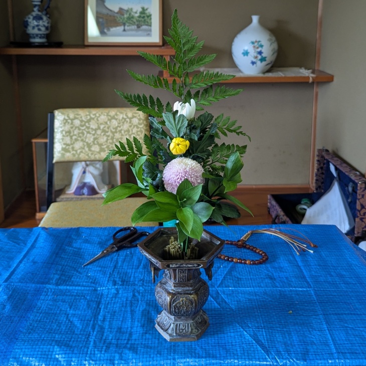 全3回を予定しており、次は脇壇の花瓶にて大きめの仏華を活けます。